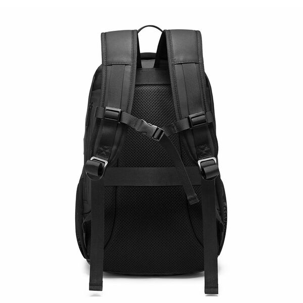 Вместительный рюкзак BANGE BG77116 отлично подойдет для длительных путешествий, тренировок и учебы. В нем сможет расположиться одежда и обувь, книги и конспекты, мобильные и компьютерные аксессуары и гаджеты. Он имеет одно основное отделение, которое закрывается на двойную фирменную молнию. Внутри предусмотрено несколько разных по размеру карманов, в том числе и на молнии. Для планшета и ноутбука на 15,6 дюймов есть глубокие карманы с фиксирующей лентой. Еще несколько карманов разместились на фронтальной части рюкзака BANGE. В верхнем кармане можно расположить мобильный телефон или кошелек. В двух боковых – предметы, которые должны быть под рукой. Также здесь предусмотрен сетчатый карман на резинке для зонта или бутылки с водой. Еще два сетчатых кармана расположилась по бокам изделия. Фронтальная часть рюкзака украшена несколькими текстильными ремнями и логотипом бренда. Модель BG77116 выполнена из плотного водоустойчивого материала. Она имеет сетчатую спинку, которая пропускает воздух, широкие мягкие лямки, регулируемые по длине. Лямки соединяются между собой специальным ремнем на карабине, что позволяет распределять нагрузку по всему телу. Сбоку имеется внешний порт USB для быстрой подзарядки гаджетов прямо на ходу.