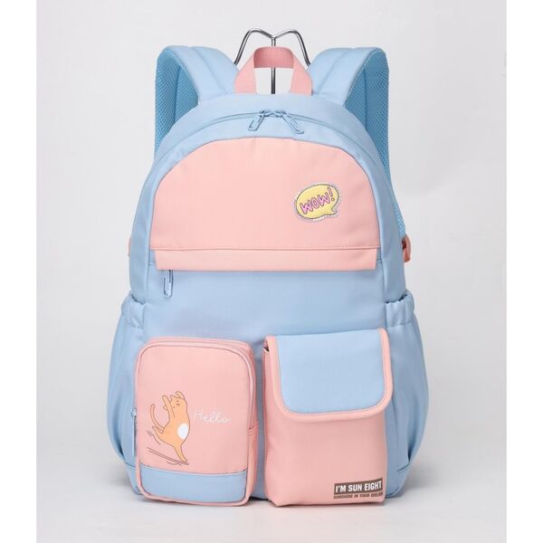 Оригинальный школьный рюкзак SE-8394 имеет необычный дизайн, который приковывает взгляды. Его особенность — несколько объемных карманов на передней части рюкзака: с откидной крышкой и на потайной молнии. Внутри них можно разместить все предметы, которые должны быть под рукой. Пара карманов находится по бокам, и подойдут для зонта или бутылки с водой. Рюкзак имеет удобную спинку и широкие лямки с сетчатой внутренней поверхностью, которые не дают коже потеть. Лямки регулируются по длине и подстраиваются под рост ребенка. В спинке имеется потайной карман на молнии для ценных вещей и багажная лента для фиксации на ручке дорожной сумки. Сверху находится прочная ручка из текстиля для переноски рюкзака в руках. В рюкзаке всего одно, но вместительное отделение, которое закрывается на двойную молнию. Внутри находится глубокий карман на резинке, где может разместиться планшет или другие гаджеты.