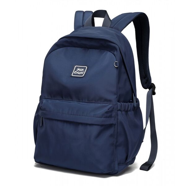 Школьный рюкзак Sun eight SE-8356 понравится всем без исключения мальчикам и девочкам. Он имеет стильный и современный дизайн, отличную вместительность и удобство. Выполнен из плотного текстильного материала, который устойчив к влаге и повреждениям. Его переднюю часть украшает яркий логотип бренда и металлическое кольцо, к которому прикреплена длинная тканевая лента на карабине. В рюкзаке Sun eight предусмотрена мягкая спинка, которая обеспечит комфорт во время переноски содержимого внутри. Широкие мягкие лямки, регулируемые по длине, не дадут плечам уставать. Верхняя тканевая ручка надежно прошита, что позволяет носить вещи большого веса. Также рюкзак имеет достаточно плотное и устойчивое дно. Модель SE-8356 имеет вместительное отделение на двойной молнии. Внутри него расположатся: книги и тетради, канцелярия, одежда, мобильные гаджеты и аксессуары. Для размещения планшета здесь предусмотрено глубокий карман на резинке. Еще несколько карманов для вещей находятся по всей поверхности рюкзака: два на резинках по бокам, один потайной — в спинке, объемный на молнии — на фронтальной части. В спинке также имеется широкая багажная лента, с помощью которой можно закрепить рюкзак на ручке дорожной сумки.