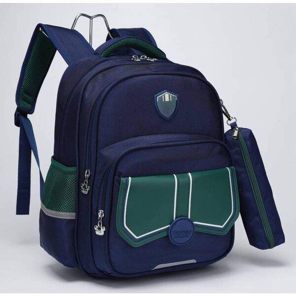 Школьный рюкзак SE-22005 — это отличный вариант для любого школьника. Имеет отличную вместительность, высокую износостойкость и минимальный вес. Жесткий каркас позволяет изделию хорошо держать форму. Прочное дно обеспечивает модели устойчивость. Плотный материал поверхности не пропускает влагу и стоек к повреждениям. Рюкзак оформлен контрастными элементами, вставками из полиуретана, логотипами бренда и нашивками. На поверхности также имеются светоотражающие детали, которые обеспечат ребенку безопасность в темное время суток. Главная особенность изделия — пенал на молнии для канцелярии, который идет в комплекте и прикрепляется к рюкзаку металлическим карабином. Модель имеет мягкую спинку с сетчатой поверхностью и широкие лямки, регулируемые по длине. Сверху находится мягкая широкая ручка для переноски рюкзака в руке и петля для закрепления на крючке школьной парты. Спереди есть два объемных кармана для предметов, которые должны быть под рукой. По бокам — два открытых сетчатых кармана. Для объемных вещей предусмотрено два отделения на фирменных металлических молниях.