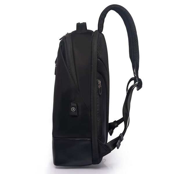 Стильный городской рюкзак TANGCOOL TC721 имеет практичный дизайн, отличную вместительность и удобство. Выполнен из надежного материала, который отталкивает воду и грязь. Для максимальной защиты модель комплектуется прочным влагозащитным чехлом. Имеет удобную ортопедическую спинку из мягкого и сетчатого материала, пропускающего воздух. Мягкие лямки легко регулируются по длине и дарят плечам комфорт. Верхняя ручка для переноски в руках усилена дополнительными швами. TANGCOOL TC721 имеет два вместительных отделения, где разместятся все необходимые для прогулки, учебы или путешествия вещи: книги, одежда, компьютерные и мобильные гаджеты и аксессуары. В отсеке ближе к спине разместился глубокий карман для ноутбука до 15,6 дюймов. Для защиты от повреждений задняя спинка усилена специальными вставками, а сам карман фиксируется защитной лентой. В этом отделении есть карман на замке для различных мелочей. Благодаря круговой молнии отделение полностью открывается и обеспечивает простой доступ к содержимому. Второй отсек предназначен для размещения канцелярии, телефона, тетрадей и блокнотов. Для них предусмотрено несколько разных по размеру карманов. На фронтальной части рюкзака находится еще один карман с вертикальной молнией. Карман для бутылок и зонтов располагается в боковой части модели, потайной карман для ценных вещей и документов — с левой стороны спинки. На одной из сторон также размещен внешний USB-порт, который позволяет заряжать мобильные гаджеты на ходу.