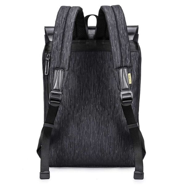 Стильный рюкзак Tangcool станет верным помощником в путешествиях, учебе, работе или прогулках по городу. Отличается наличием кожаных вставок и тонких ремней, которыми украшена фронтальная часть модели. Кожаные вставки также предусмотрены на лямках и днище изделия, что повышает износостойкость изделия. Сама поверхность рюкзака водоотталкивающая и устойчива к повреждениям. Спинка удобная, лямки мягкие, регулируются по длине и имеют сетчатое покрытие. Мягкая ручка дополнительно прошита несколькими швами для максимальной надежности. Рюкзак имеет одно основное отделение, свободный доступ к которому обеспечивает верхняя часть, открывающаяся полностью как саквояж. Края отделения дополнительно фиксируются металлическими кнопками. Верхняя кожаная крышка откидывается, как у портфеля. Внутри основной отсек содержит несколько карманов разного размера. Карман, расположенный ближе к спинке, подойдет для ноутбука и планшета. Для надежности он фиксируется эластичной лентой. Кроме основного отделения в рюкзаке располагается два глубоких кармана на фронтальной части и один потайной карман в спинке, расположенный вертикально.