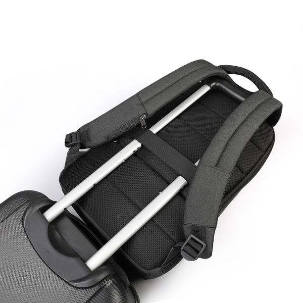 Вместительный и надежный рюкзак Tigernu T-B3611 для длительных путешествий или повседневного использования. Имеет эргономичный и стильный дизайн, лаконичную форму с закругленными краями. Выполнен из водоотталкивающего и устойчивого к повреждениям материала Оксфорд, а также пластиковых элементов. Его ортопедическая спинка обладает дышащей поверхностью для комфортной носки. Мягкие лямки S-образной формы регулируются по длине. Крепкая ручка усилена дополнительными швами и выдержит большую нагрузку. Главная фишка рюкзака – кодовый замок, на который закрывается основное отделение. Молнии – прочные и надежные, выполненные из металла. Важная особенность модели – внешний USB-порт для зарядки гаджетов на ходу. Подключите один USB-кабель к Power Bank, другой – к гаджету, чтобы выполнить зарядку. Tigernu T-B3611 имеет большое количество отсеков. Основное отделение предназначено для ноутбуков с диагональю экрана на 15,6 дюймов. Здесь предусмотрены отделы для планшета, телефона, аксессуаров. В спинке и одной из лямок находятся потайные карманы на молниях для хранения ценных вещей. На другой лямке – обычный кармашек для очков. Раскрывается рюкзак на 180 градусов для быстрого поиска предметов. Для его закрепления на ручке дорожного чемодана используется эластичная бандажная лента.