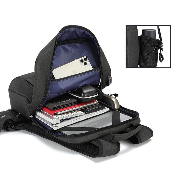 Рюкзак Tigernu T-B3928 отлично подойдет для тех, кто идет в ногу с современной модой. Он имеет стильный внешний вид, небольшой вес и отличную вместительность. Внешняя поверхность рюкзака выполнена из плотного материала, который хорошо отталкивает влагу. Спинка у него усилена и имеет фактурное покрытие, оказывающее полезное воздействие на спину. Лямки — мягкие и широкие, регулируются по длине. И верхняя мягкая ручка, и лямки, дополнительно усилены и прошиты несколькими швами. Дно — прочное и устойчивое. Внутри Tigernu предусмотрено одно основное отделение, закрывающееся на фирменную молнию с двумя металлическими бегунками. В специальном кармане с крепежными ремнями разместится ноутбук на 15, 6 дюймов. Для телефона, планшета и других гаджетов здесь имеется несколько других карманов меньшего размера, в том числе и на молнии. На фронтальной части модели T-B3928 расположились два глубоких вертикальных кармана со скрытыми молниями. Это позволяет защитить содержимое от недоброжелателей. В одной из лямок находится небольшой карман с карабином для ключей. В другой — специальный сетчатый мешок на эластичном ремне для зонта или бутылки с водой. В спинке имеется багажная лента со светоотражателями для закрепления рюкзака на ручке дорожной сумки. На одной из сторон — внешний порт USB для быстрого подключения мобильного гаджета к PowerBank.